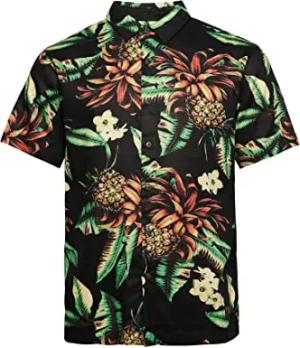 Herren Kurzärmeliges Hawaiihemd Schwarz Ananas S