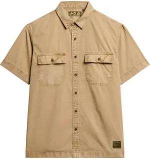 Herren Military-Kurzarmhemd Stonewash Taupe Braun XXL