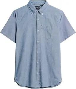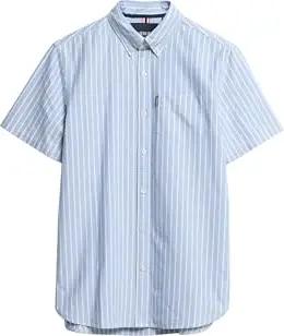 Herren Oxford Kurzarmhemd Broker Blau Gestreift M