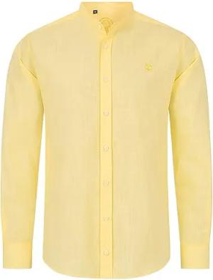 Herren Hemd Leinen-Optik Sommer Hemd Herrenhemd Krangelos Leinenhemd Shirt Männer Hemden H-321 Gelb L