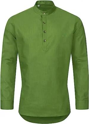 Herren Hemd Schlupfhemd Leinenhemd Hemden Langarm Hemd Regular Fit Herrenhemd Basic Sommerhemd Männer Hemd Shirt H-346 Grün XL