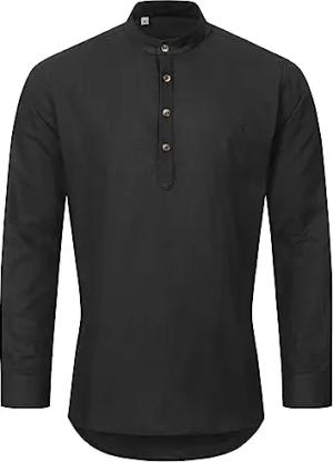 Herren Hemd Schlupfhemd Leinenhemd Hemden Langarm Hemd Regular Fit Herrenhemd Basic Sommerhemd Männer Hemd Shirt H-346 Schwarz M