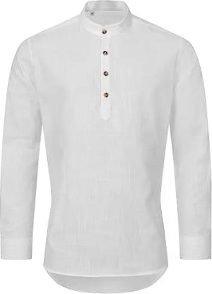 Herren Hemd Schlupfhemd Leinenhemd Hemden Langarm Hemd Regular Fit Herrenhemd Basic Sommerhemd Männer Hemd Shirt H-346 Weiß S