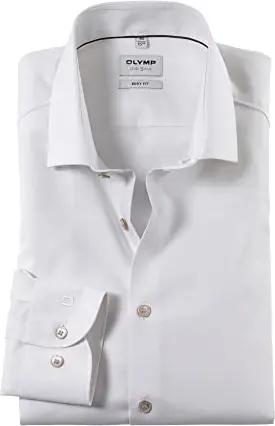 Herren Oberhemd Langarm Level Five,Einfarbig,Body fit,New York Kent-2,Weiss 00,38