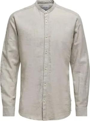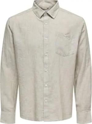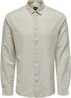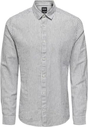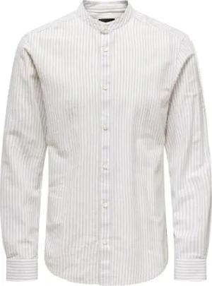 ONLY&SONS Herren Leichtes Leinen Hemd Langarm Slim Fit Oberteil gestreiftes Basic Shirt, Farben:Beige, Größe Hemd:L
