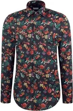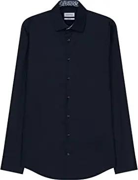 Herren Slim Fit Langarm Hemd, Dunkelblau, 41 EU