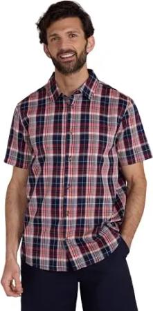 Weekender Kurzarm-Shirt für Herren - 100% Baumwolle, leichtes Herrenshirt, atmungsaktives Baumwollhemd - Frühling Sommer, Camping & Reisen Dunkel Rot Small