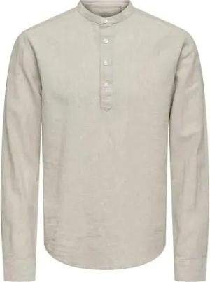 Herren Leinen Hemd ONSCaiden Stripe Langarm gestreift 22026601 Chinchilla M