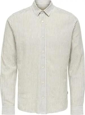 ONLY&SONS Herren Leichtes Leinen Hemd Langarm Slim Fit Oberteil gestreiftes Basic Shirt, Farben:Beige, Größe Hemd:L