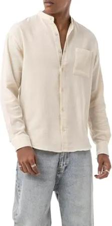by Spruce - Leichtes Langarmhemd mit Stehkragen – luftiger Stoff, lässig & stilvoll Beige M