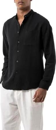 by Spruce - Leichtes Langarmhemd mit Stehkragen – luftiger Stoff, lässig & stilvoll Schwarz S
