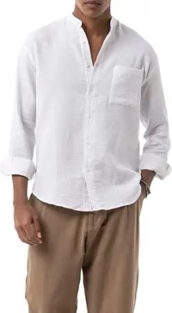 Premium Hemd aus Reiner Baumwolle Leinenhemd Casual Business atmungsaktiv Weiß L