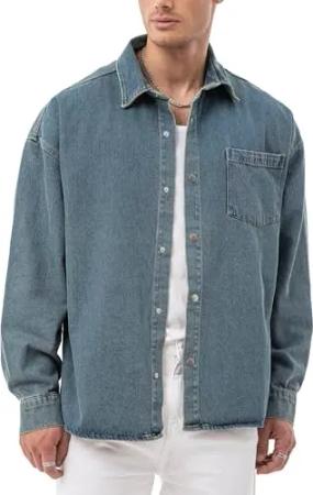 by Spruce – Oversize Denim Overshirt – Weites Jeanshemd mit Druckknöpfen & Brusttasche – Langarm Hemdjacke im Oversized Fit für Freizeit & Streetwear Blau S