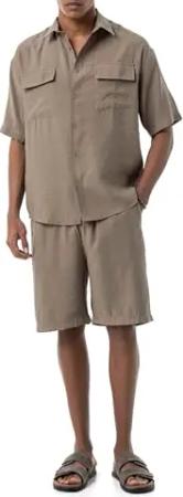 by Spruce - Zweiteiliges Set aus Kurzarm-Hemd & Shorts – luftiger Stoff, entspannter Sommer-Look Khaki L
