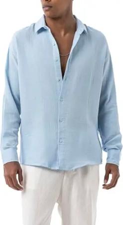 By Tarz Cool – Luftiges Sommerhemd mit Kentkragen – Lockeres Freizeithemd aus Baumwoll-Mix – Leichtes Shirt im Casual Look Blau S