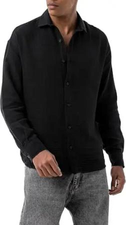 Hemd für Herren Freizeit-Hemd Langarm Casual Leichter Stoff Schwarz S