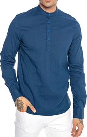 Elegantes Herren Leinenhemd Langarm Casual Baumwolle Indigo S