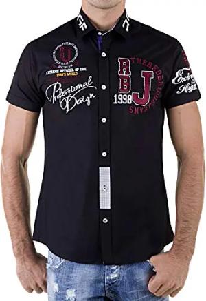 Hemd Freizeithemd T-Shirt Herren Regular Fit Bestickt Modern Style Schwarz S