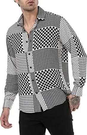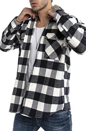 Hemd für Herren Freizeithemd Langarm Baumwolle Kariert Weiß XL