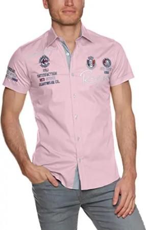 Herren Hemd Kurzarm Freizeithemd Regular Fit Tailliert Bestickt R-Style R-2122 S Rosa Pink