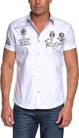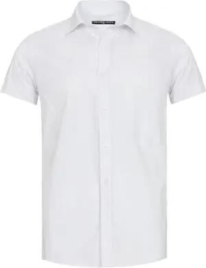 Herren Hemd Kurzarm Freizeithemd Regular Fit Tailliert Bestickt R-Style R-2122 S Weiß White 095