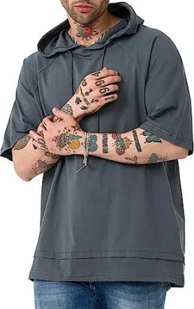 Herren T-Shirt Double Layer Oversized mit Kapuze Baumwolle Anthrazit S
