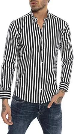 Hochwertiges Hemd gestreift Langarm Ideal für Business und Alltag Premium Qualität Schwarz XXL