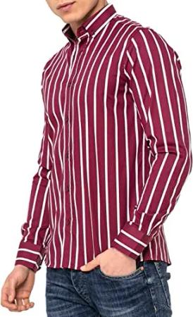 Hochwertiges Langarmhemd mit vertikalen Streifen Modisch und Elegant für Business und Freizeit Bordeaux XL