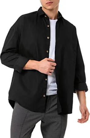 By Tarz Cool – Luftiges Sommerhemd mit Kentkragen – Lockeres Freizeithemd aus Baumwoll-Mix – Leichtes Shirt im Casual Look Schwarz L