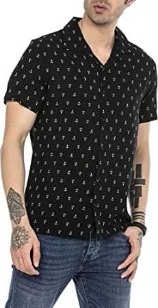 Luftiges Freizeithemd Leichter Stoff Casual Hemd Kurzarm Schwarz S