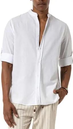 Premium Hemd aus Reiner Baumwolle Leinenhemd Casual Business atmungsaktiv Weiß XXL