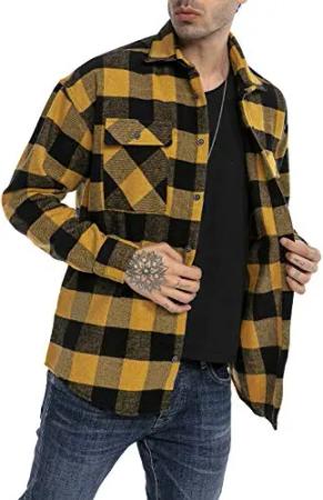 Modisches Karohemd im Holzfällerlook Vintage-Design Gelb-Schwarz S