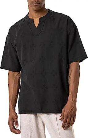 Premium Hemd Kurzarm T-Shirt V-Ausschnitt Tunika Baumwolle Schwarz XL
