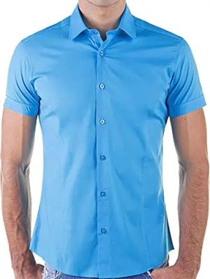 Stilvolles Hemd Freizeithemd Kurzarm Business Casual Hellblau XL