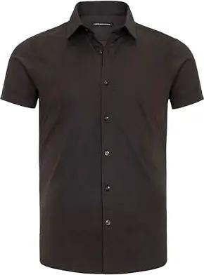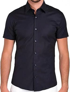 Hemd für Herren Freizeithemd Kurzarm Business Casual Hochzeit Elegant Slim Fit L Schwarz
