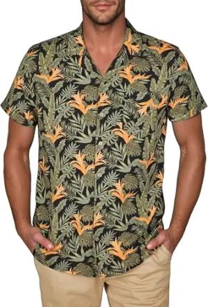 Hawaii Hemd Männer Kurzarm RIVMick Regular Fit Hemd Sommerhemd Hawaiihemd Brusttasche Blumen, Größe:XXL, Farbe:Leaves Black-Olive