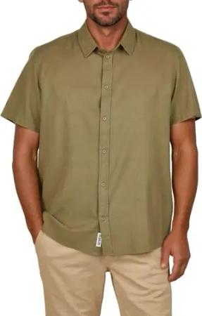 Leinenhemd Herren Kurzarm Regular Fit RIVEmilio Freizeithemd Sommerhemd Leinen Hemd Einfarbig, Größe:XXL, Farbe:Ivy Olive