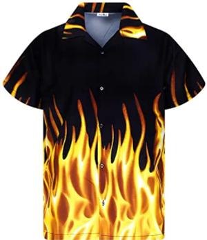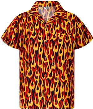 Funky-Hawaii-Hemd, Herren, Kurzarm, Flames Wild, Rot, M
