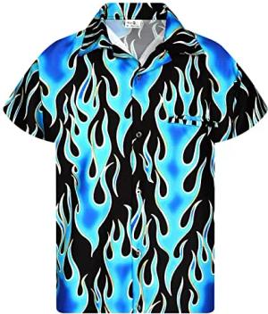 Funky-Hawaii-Hemd, Herren, Kurzarm, Flames Wild, Blau, S