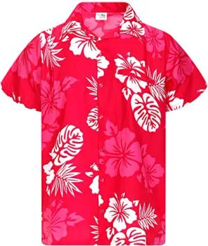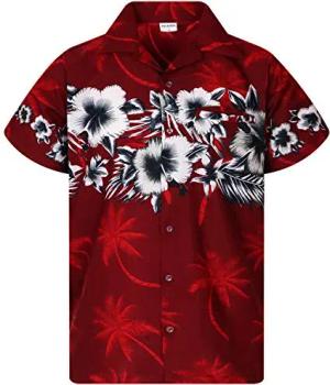 Funky Hawaii-Hemd, Herren, Kurzarm, JK-Hibiscus-New, Maroon-Rot, M