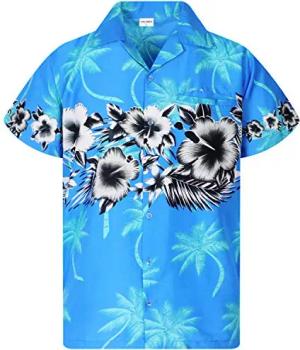 Funky-Hawaii-Hemd, Herren, Kurzarm, Surf, Blau, 8XL