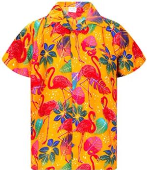 Funky Hawaii-Hemd, Herren, Kurzarm, Flamingos, Orange, S