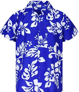 Funky-Hawaii-Hemd, Herren, Kurzarm, Hibiscus, Indigo-Blau, XXL