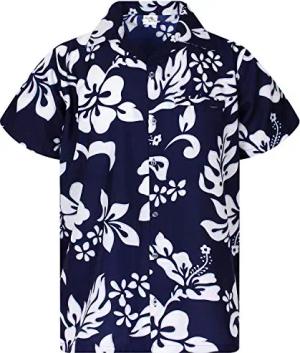 Funky-Hawaii-Hemd, Herren, Kurzarm, Hibiscus, Navy-Blau, XS