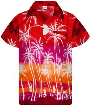 Funky-Hawaii-Hemd, Herren, Kurzarm, Surf, Rot, XS