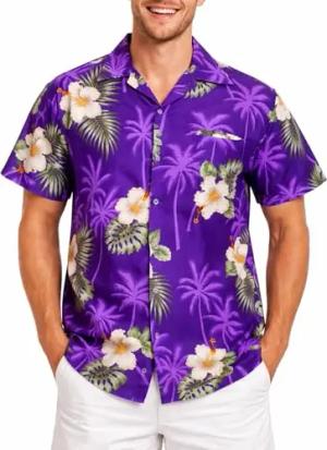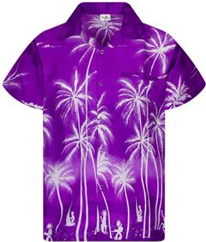 Funky Hawaii-Hemd, Herren, Kurzarm, Beach, Violett, XXL