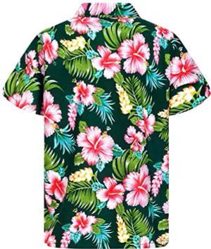 Funky Hawaii-Hemd, Herren, Kurzarm, JK-Hibiscus-New, Dunkel-Grün, M