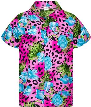 Funky Hawaii-Hemd, Herren, Kurzarm, Leopard-Flowers, Pink, XL