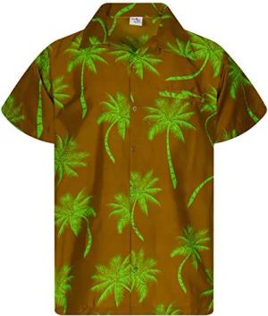 Funky-Hawaii-Hemd, Herren, Kurzarm, Palm-Shadow, Mustard-Grün, XXL