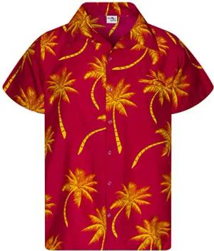 Funky-Hawaii-Hemd, Herren, Kurzarm, Palm-Shadow, Rot-Gelb, L